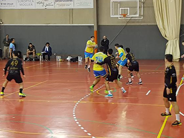 El conjunto amarillo se adjudicó el primer parcial con un 1-3, pero el equipo local reaccionó y se situó 4-3. El equipo de Moguer volvió a tomar la iniciativa y fue cerrando hasta el descanso cada parcial con una ventaja de un gol (10-11).